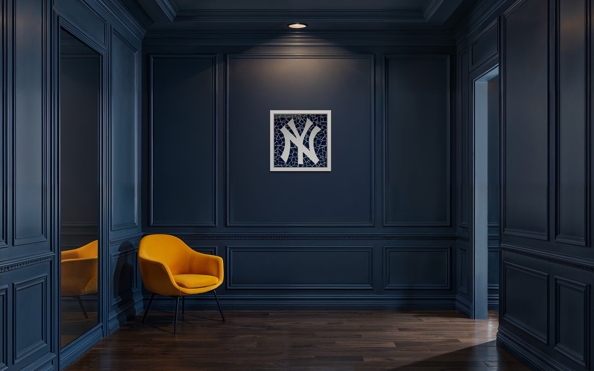 The iconic NY logo captured in ceramic mosaic on board.