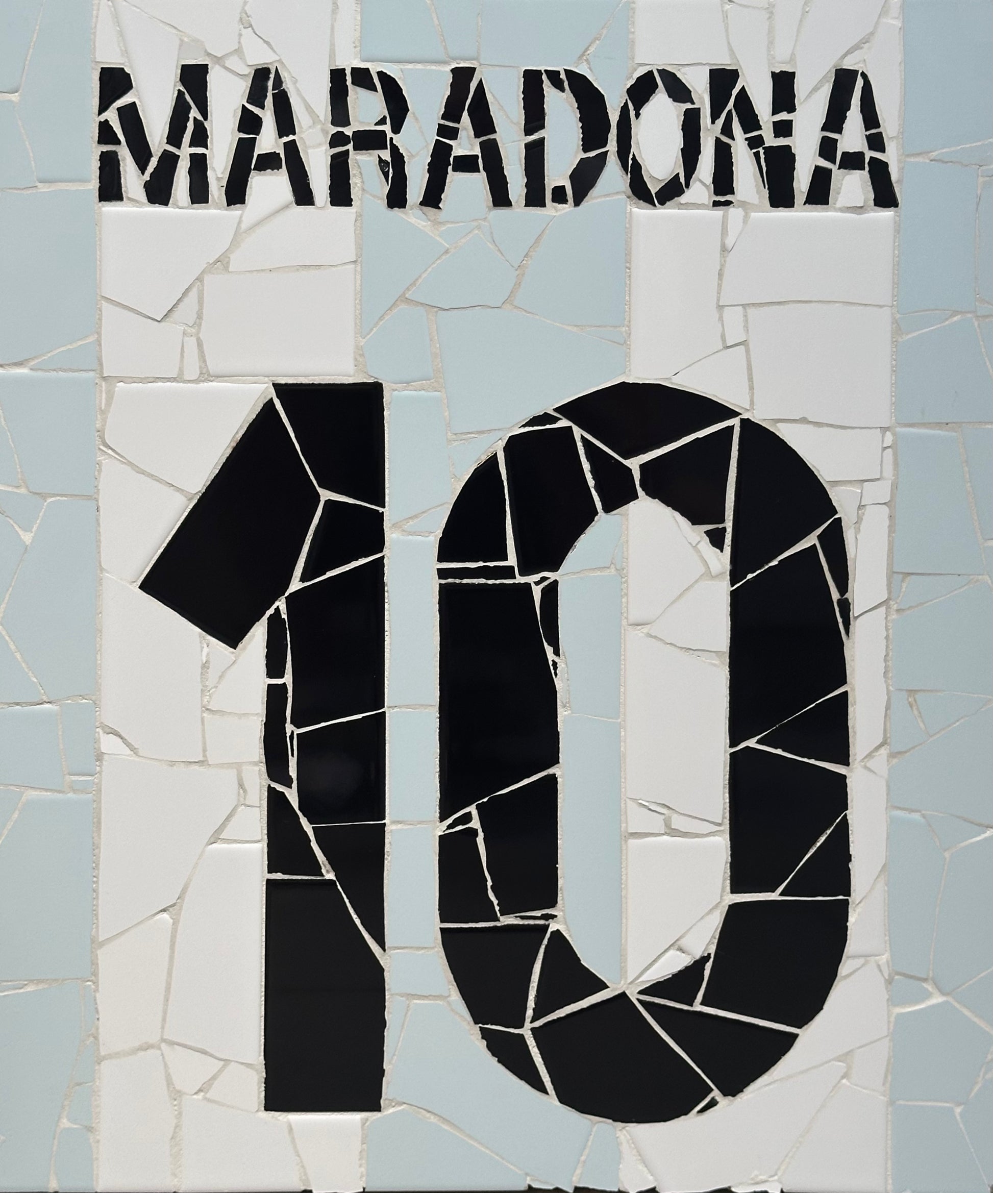 A one off ceramic mosaic of the Iconic Argentina number 10 shirt, owned by the one and only Diego Maradona…